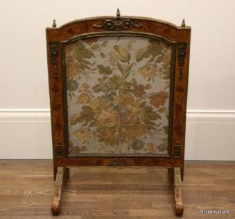 A FINE LOUIS XVI STYLE KINGWOOD MARQUETRY FIRE SCREEN