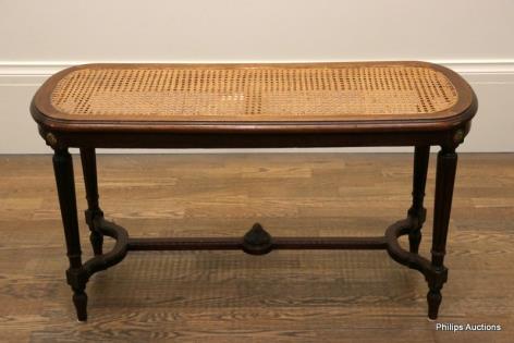 A LOUIS XVI STYLE WALNUT STRETCHER-BASED PIANO STOOL