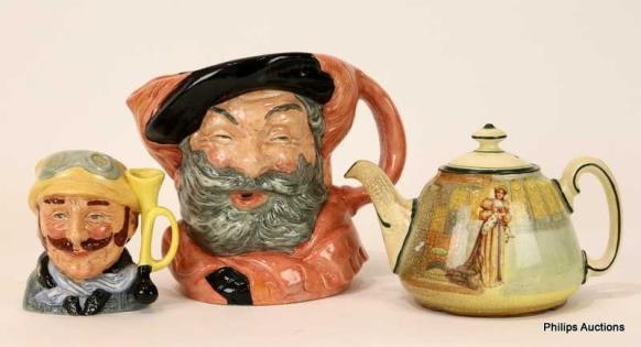 A ROYAL DOULTON SERIES WARE TEAPOT AND TWO CHARACTER JUGS