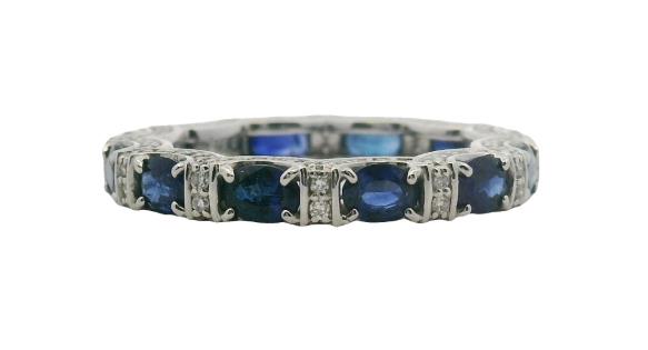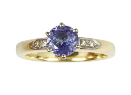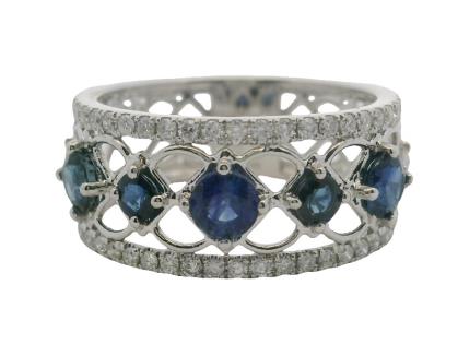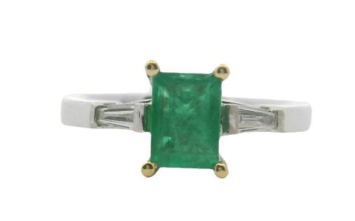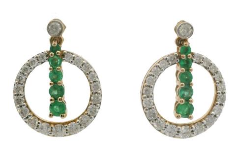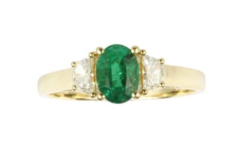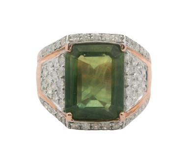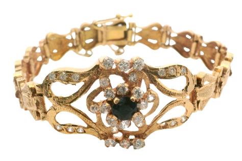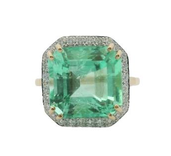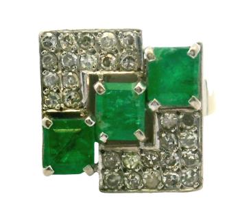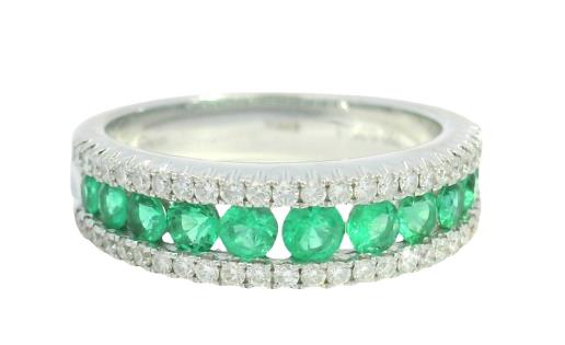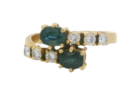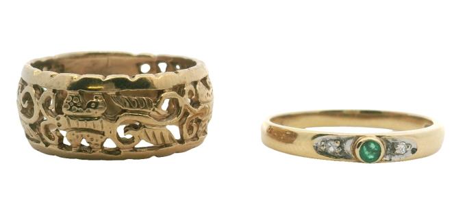 14 & 9CT GOLD, BAND SET WITH ROUND CUT EMERALD & DIAMONDS & A WIDE OPEN WORK BAND, T. W. 6GRAMS
