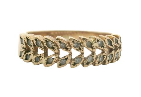 A 9CT YELLOW GOLD LEAF DESIGN DIAMOND SET DOUBLE BAND RING, SIZE R1/2, WEIGHT 4.0GRAMS