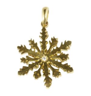 AN 18K YELLOW GOLD DIAMOND DETAILED SNOWFLAKE PENDANT, WEIGHING 2.6GRAMS