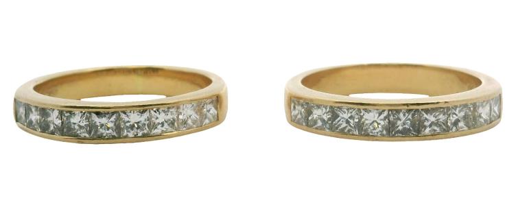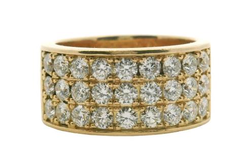 AN 18K Y.G MODERN WIDE DIAMOND SET BAND DRESS RING, TOTALLING 1.35CT, SIZE: P, T.W.: 10GRAMS