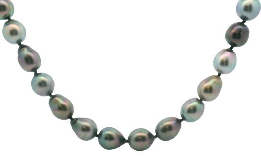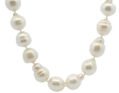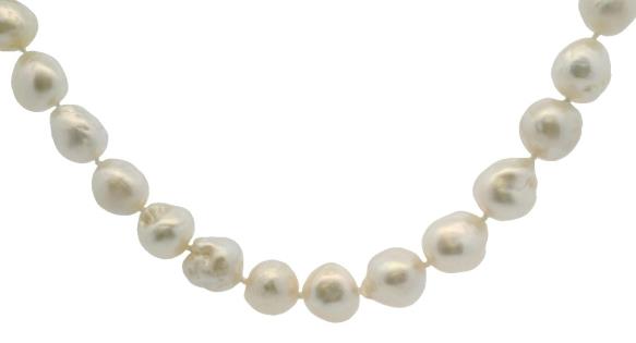 A STRAND OF BAROQUE TAHITIAN PEARLS ON 10K Y.G CLASP, LENGTH: 45CM, T.W.: 75.4GRAMS