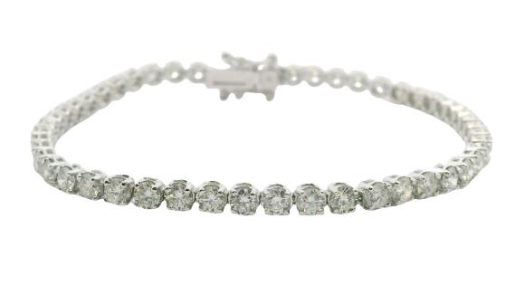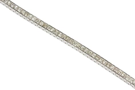 AN 18K W.G CLASSIC DIAMOND TENNIS BRACELET, TOTALLING 6.72CT, 18.5CM LONG, T.W.: 10.3GRAMS