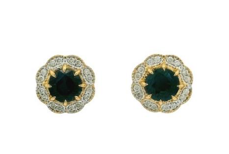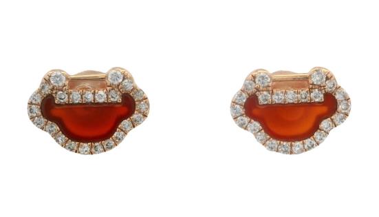 A PAIR OF 18K R.G RED JADE & DIAMOND (.180CT) DETAIL EARRING STUDS, WEIGHING 1.6GRAMS TOTAL