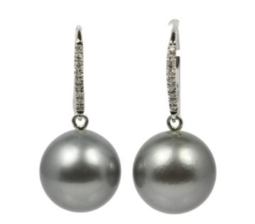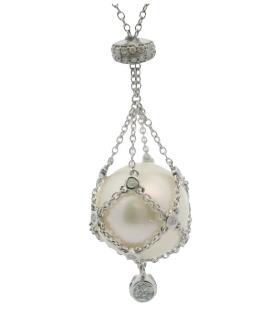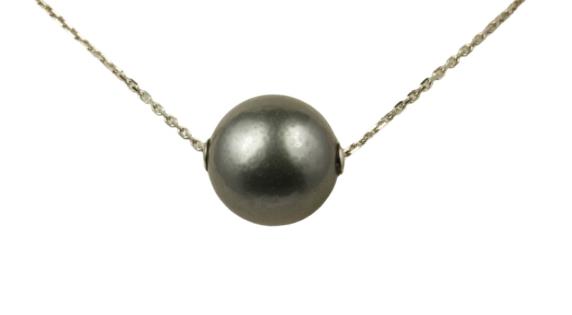 AN 18K W.G FLOATING SOLITAIRE TAHITIAN PEARL 13.5MM ON WHITE GOLD CHAIN, T.W.: 5.7GRAMS