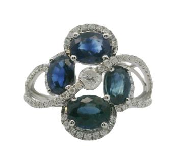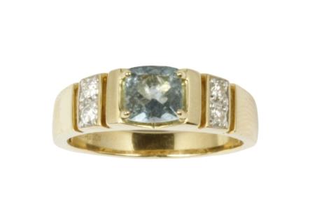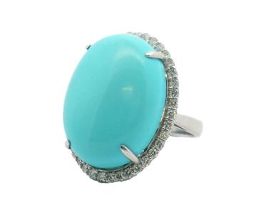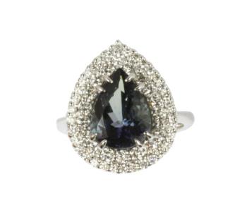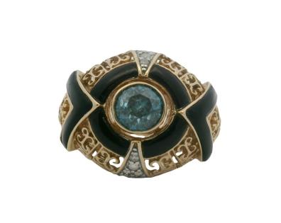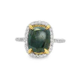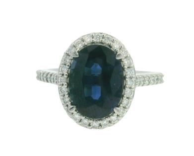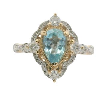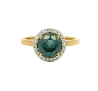 A 14 Y.G TREATED BLUE DIAMOND OF 1.00CT & NATURAL WHITE DIAMOND HALO RING, SIZE: J, T.W.: 2.3GRAMS