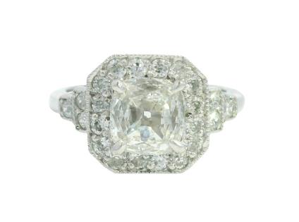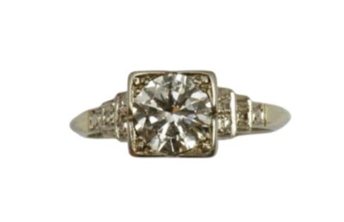 AN 18K W.G/PLAT GORGEOUS ART DECO OLD CUT DIAMOND SOLITAIRE RING, TOTALLING 1.15CT