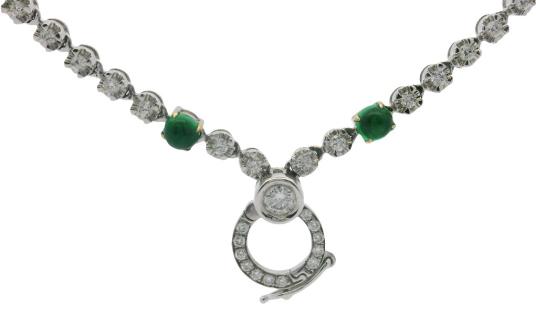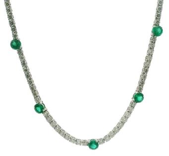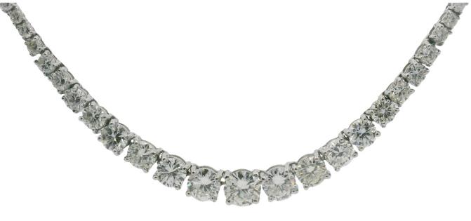 AN 18K W.G DIAMOND TENNIS NECKLACE, TOTALLING 7.40CT, 43.5CM LONG, T.W.: 17.2GRAMS