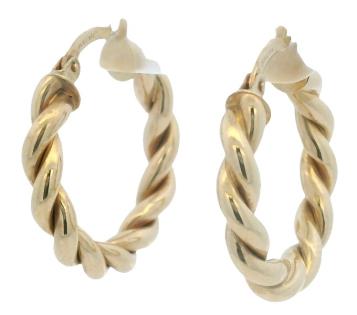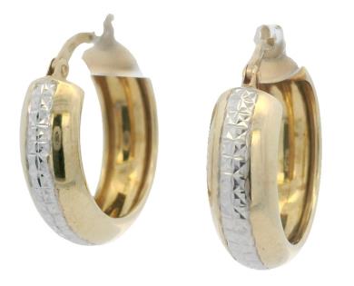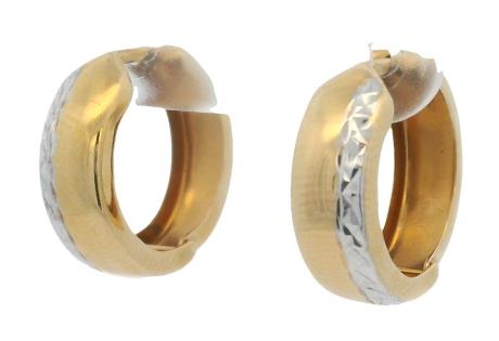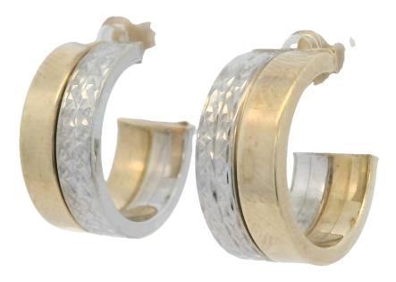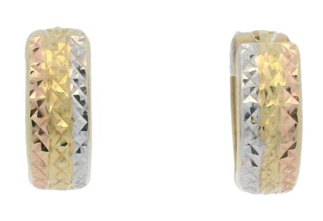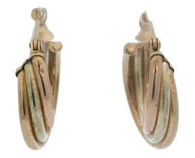 A PAIR OF SMALL 10K GOLD TRI-TONE SMALL HOOP EARRINGS, WEIGHING 1.5GRAMS TOTAL