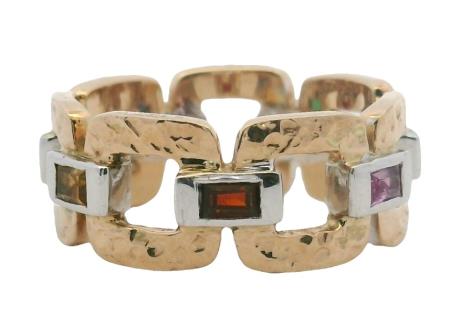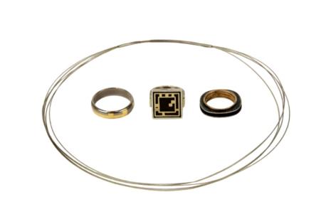 A STRIKING SELECTION OF ARTISAN WORKED MODERNIST JEWELLERY IN STERLING SILVER/GOLD COMBINATION