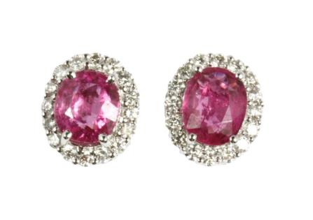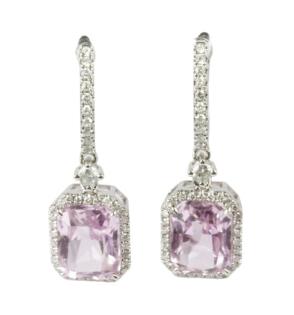 A PAIR OF 18K W.G NATURAL PINK TOURMALINES (2.00CT) & DIAMOND .15CT DROP EARRINGS, Sale Room Notice