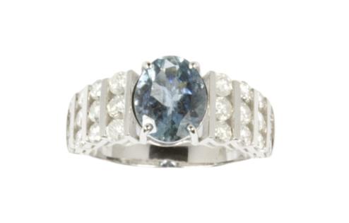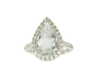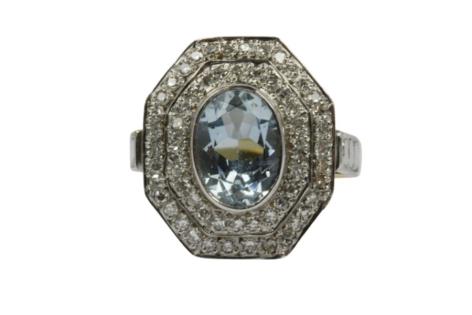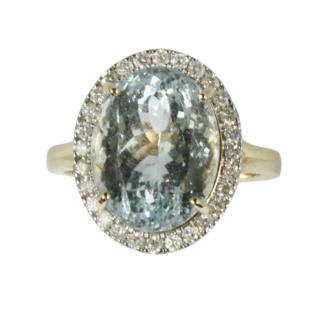 AN 18K W.G LARGE AQUAMARINE OF 10.45CT, & DIAMOND (1.55CT) CLUSTER RING, SIZE: M1/2, T.W.: 8.1GRAMS