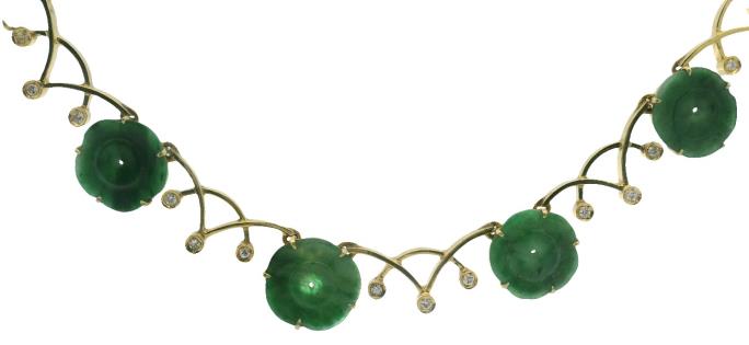 AN 18K R.G RED JADE & DIAMOND (.150CT) DETAIL PENDANT ON ATTACHED CHAIN, 46CM LONG, T.W.: 2.0GRAMS