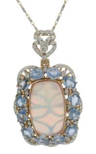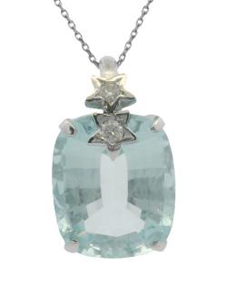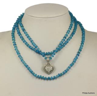 AN 18CT & 9CT WHITE GOLD DIAMOND SET HEART ENHANCER ON A STRAND OF APATITE BEADS, T.W. 19.8G