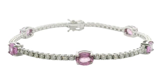 A PLAT FANCY LINK DIAMOND LINE BRACELET, TOTALLING 12.04GRAMS, LENGTH: 19CM, T.W.: 15.2GRAMS