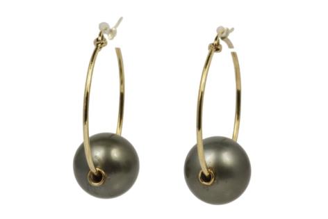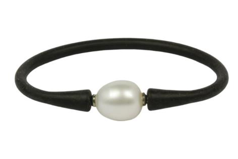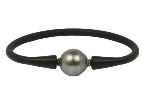 A BLACK NEOPRENE FLEXIBLE BRACELET FITTED WITH TAHITIAN PEARL (13.7MM) T.W. 7.2GRAMS