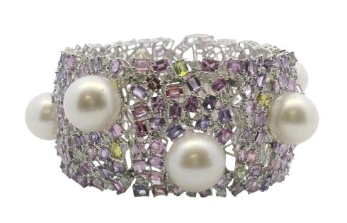 A BLACK NEOPRENE FLEXIBLE BRACELET FITTED WITH SOUTH SEA PEARL (12.6MM) T.W. 7GRAMS