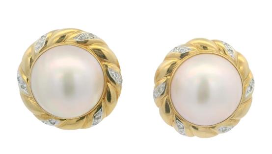 AN 18K YELLOW GOLD SOUTH SEA PEARL & DIAMOND DRESS RING, SIZE: O, TOTAL WEIGHT: 14.5GRAMS
