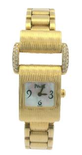 A PIAGET LADIES MISS PROTOCOLE 18CT YELLOW GOLD DIAMOND SET WATCH, T.W. 83.1GRAMS
