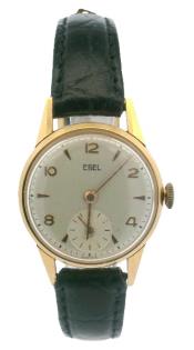 AN 18CT YELLOW GOLD LADIES VINTAGE EBEL WRISTWATCH ON LEATHER, TOTAL WEIGHT 17.7GRAMS