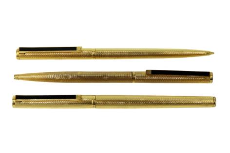 THREE GOLD PLATED DUNHILL GEMLINE VINTAGE SLIM PENS