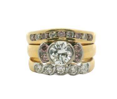 AN 18CT YELLOW & WHITE GOLD PINK ARGYLE DIAMOND AND WHITE DIAMOND THREE RING SUITE