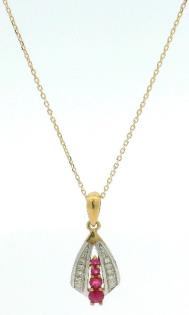 A 9CT YELLOW GOLD RUBY AND DIAMOND SET PENDANT ON CHAIN, 1.1GRAMS