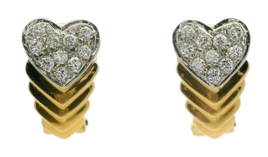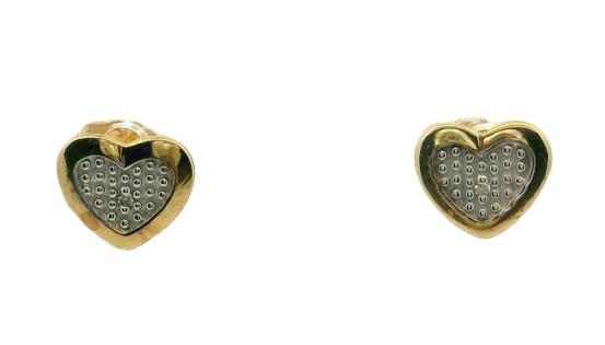 A 9CT YELLOW & WHITE GOLD PETITE TINY DETAILED PAIR OF HEART SHAPED STUDS, 0.4GRAMS