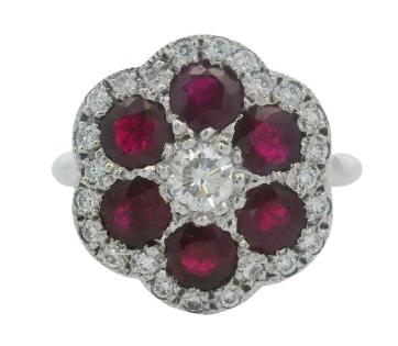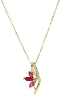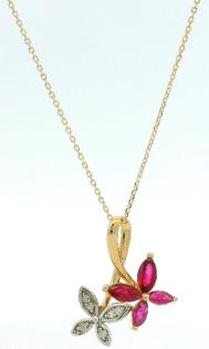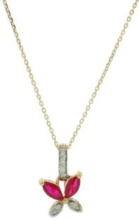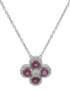 A RUBY AND DIAMOND DETAILED PETITE FLORAL PENDANT ON CHAIN