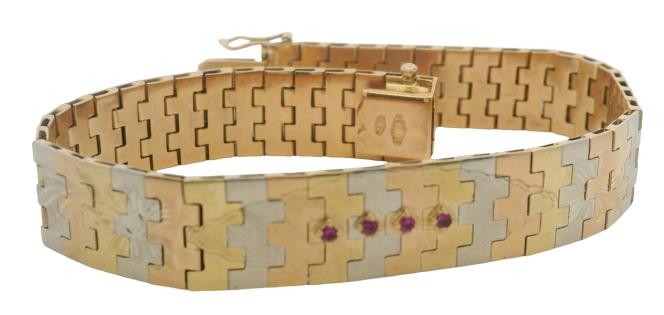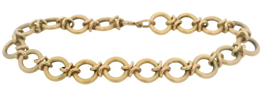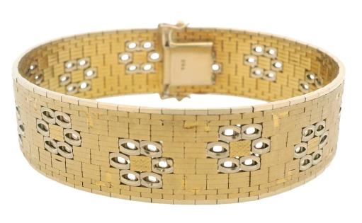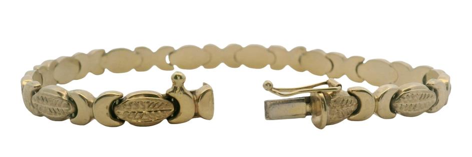 A VINTAGE FLORAL ETCHED ITALIAN 18CT YELLOW GOLD BRACELET, LENGTH: 18.8CM, WEIGHING 45.5GRAMS