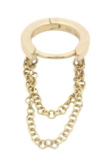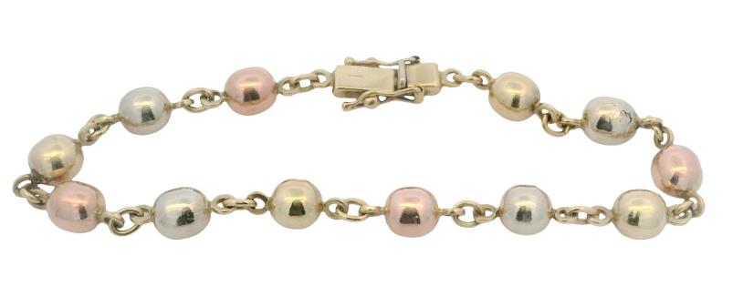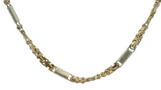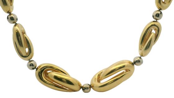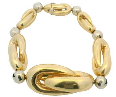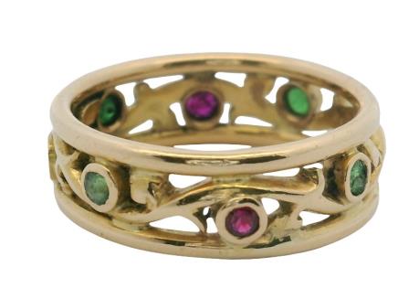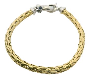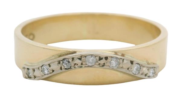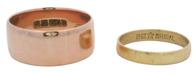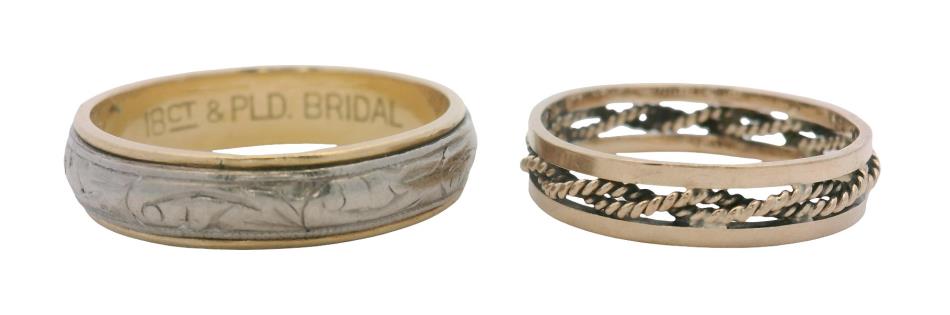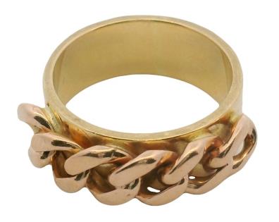 AN 18K YELLOW GOLD BAND RING WITH ROSE GOLD LINK DETAIL, SIZE: J1/2, T.W.: 9.1GRAMS