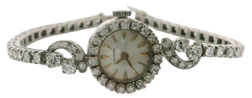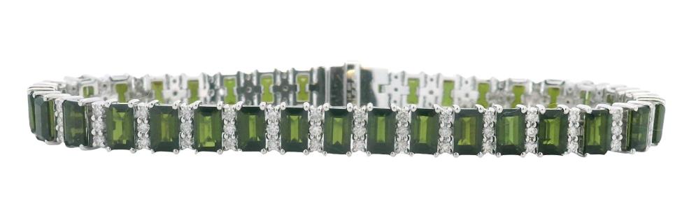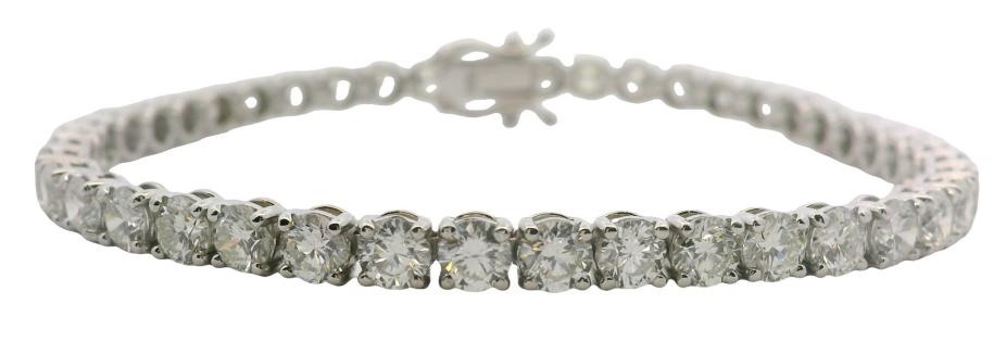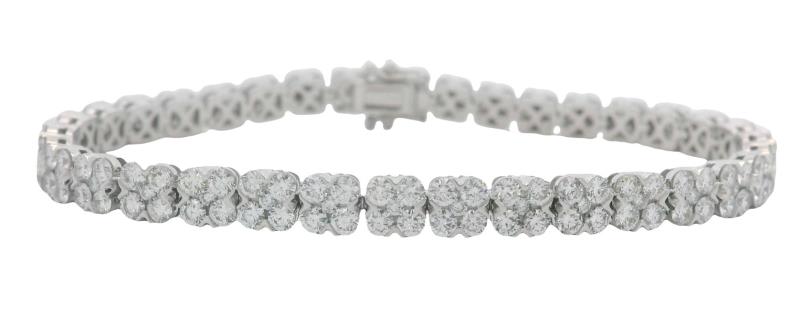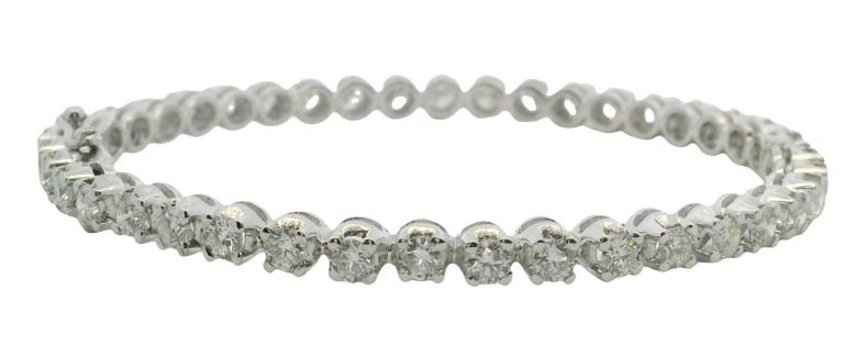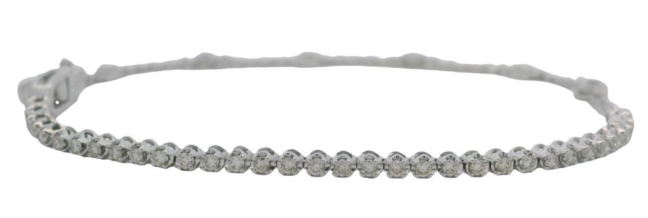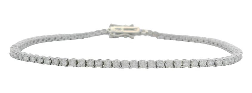 A DELICATE DIAMOND SET TENNIS B'LET IN 18K WHITE GOLD TOTALLING 1.60CT, L: 16.8CM, T.W.: 5.7GRAMS