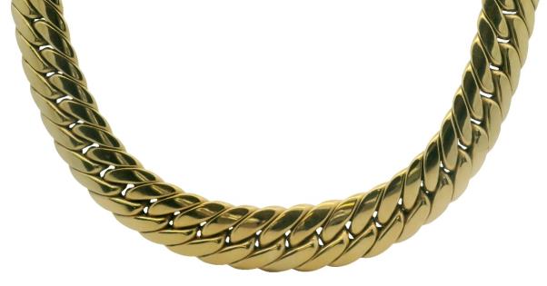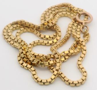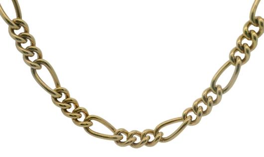 A SOLID 9K Y.G HEAVY FIGARO LINK STATEMENT CHAIN, LENGTH: 50CM, WEIGHING 93.3GRAMS