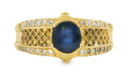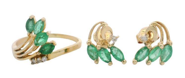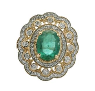 A 14K Y.G OVAL CUT EMERALD OF 1.98CT & DIAMOND(.70CT) DETAILED MANDALA FRAME DRESS RING, SIZE: O