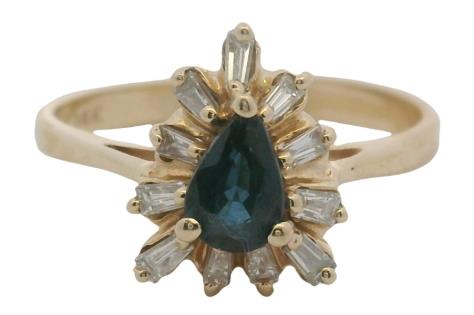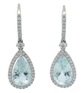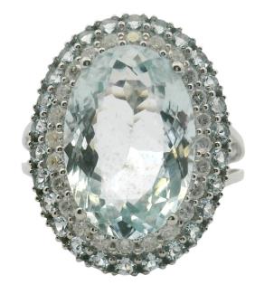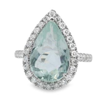 AN 18K W.G PEAR CUT AQUAMARINE OF 4.00CT & DIAMOND(.48CT) SET HALO CLUSTER RING, SIZE: L1/2, 4.7GRAM
