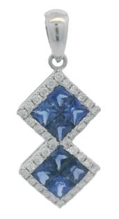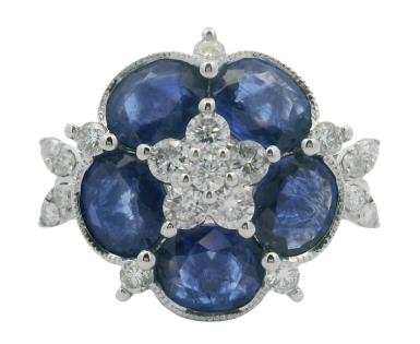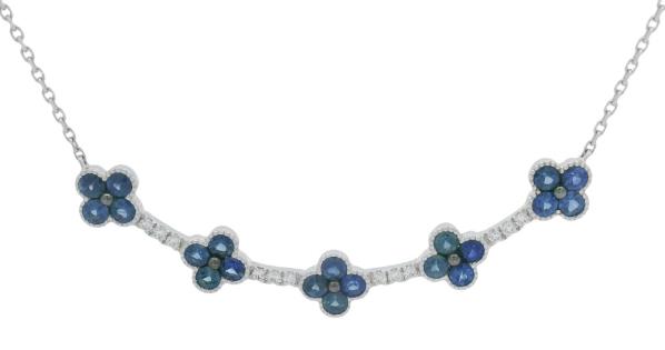 A FIXED 18KW.G 'U' SHAPE FLORAL ROUND SAPPHIRES(1.60CT) & DIAMOND ON DIAMOND(.65CT) DETAILED COLLIER