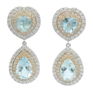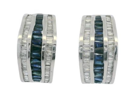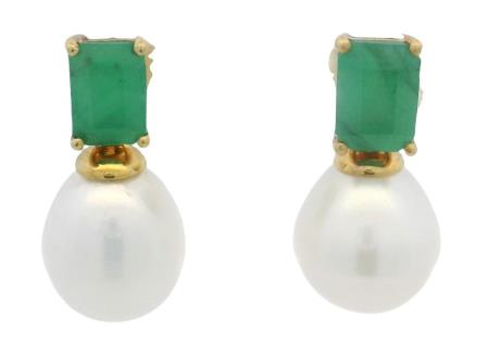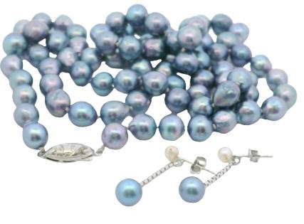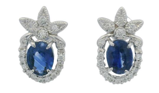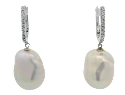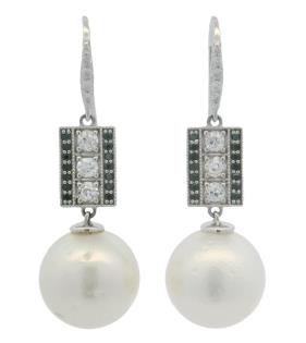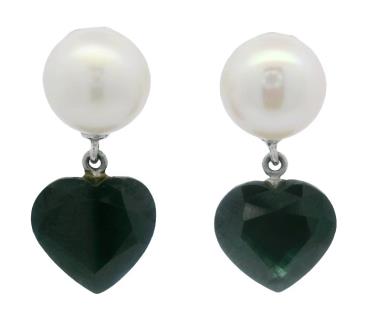 A PAIR OF 18K W.G AUSTRALIAN HEART SAPPHIRE(6.50CT) & PEARL SET EARRINGS, WEIGHING 7.1GRAMS TOTAL