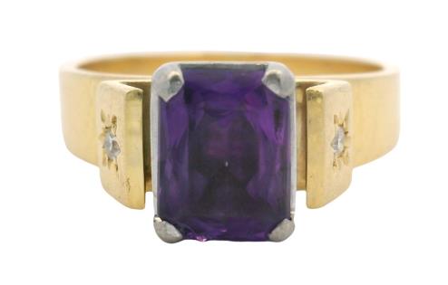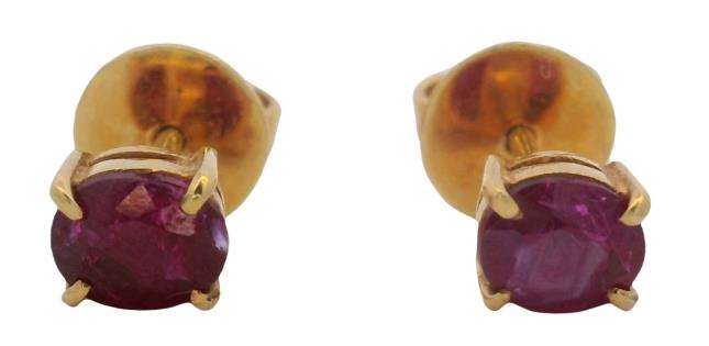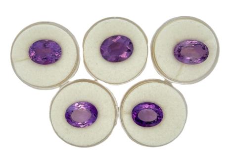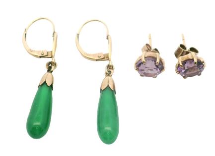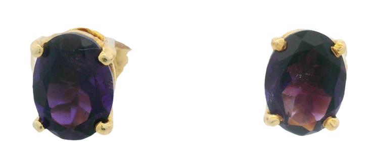 A 14CT YELLOW GOLD PAIR OF 0.60CTS OVAL AMETHYST SET STUD EARRINGS, T.W. 1.8GRAMS