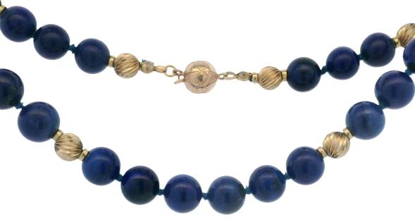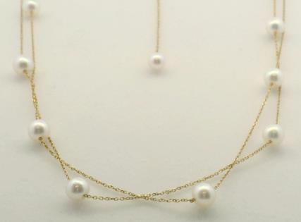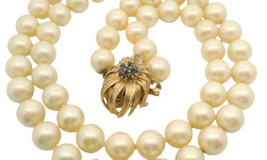 A STRAND OF PALE GOLDEN PEARLS WITH SAPPHIRE VINTAGE 14K Y.G CLASP, LENGTH: 75CM, T.W.: 101.7GRAMS