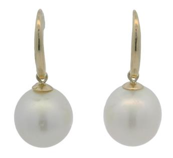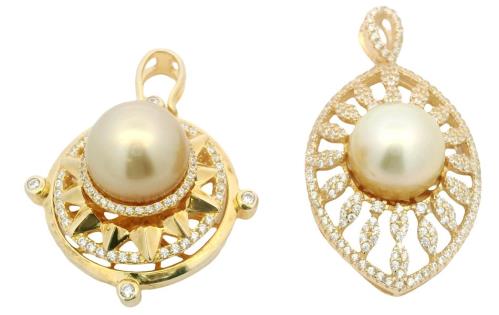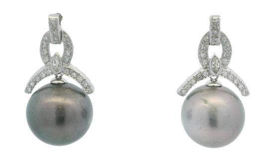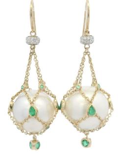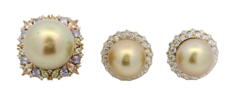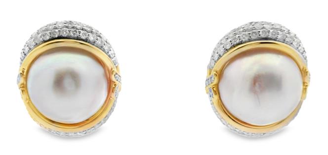 A 14CT YELLOW GOLD PAIR OF 15MM PEARL & 2.09CTS DIAMOND STATEMENT STUDS, T.W. 17.7GRAMS