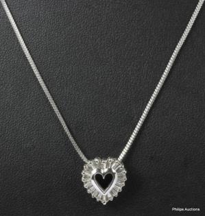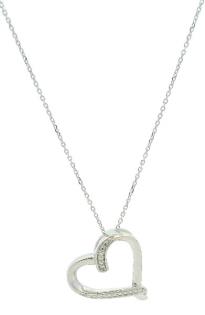 A 9CT WHITE GOLD DIAMOND DETAILED HEART PENDANT ON CHAIN, T.W. 1.3GRAMS