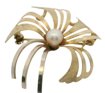 A 18CT Y.G PEARL & DIAMOND (.50CT) SPRAY BROOCH WEIGHING 11.4GRAMS