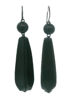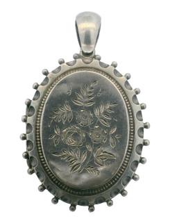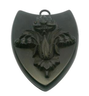 A VICTORIAN VULCANITE SHIELD SHAPED LOCKET, T.W. 18.6GRAMS