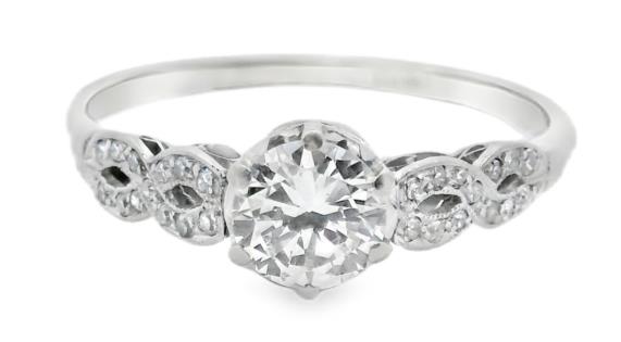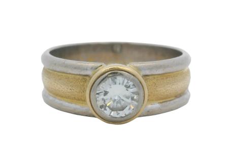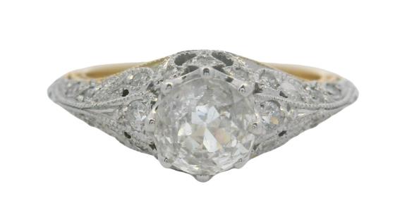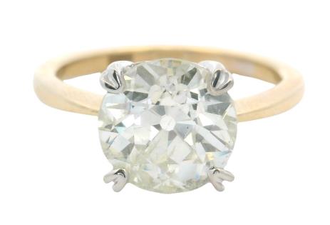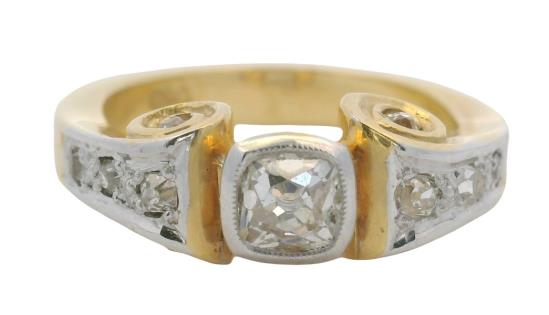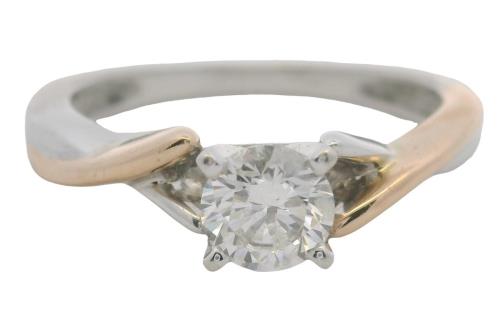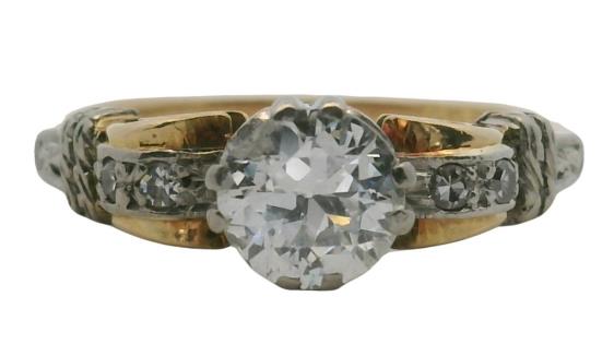 AN 18K/PLAT VINTAGE SOLITAIRE EARLY BRILLIANT CUT DIAMOND RING OF 0.60CT, SIZE: S, T.W.: 3.1GRAMS