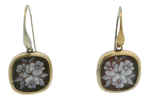 A PAIR OF GOLD ON SILVER ITALIAN CAMEO DROP EARRINGS BY DELUCA, T.W. 10.3GRAMS