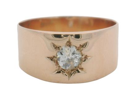 A 15CT ROSE GOLD ANTIQUE AUSTRALIAN DIAMOND GYPSY SET RING BY WAGNER, SIZE O1/2, T.W. 4.2GRAMS