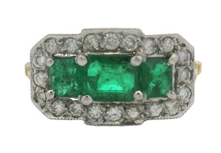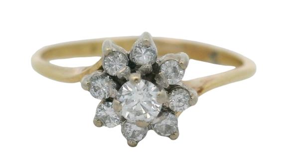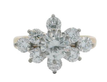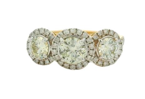 A 14CT YELLOW GOLD TRIPLE BRILLIANT CUT CLUSTER DIAMOND RING, A.T.D.W. 1.50CTS, SIZE M, 2GRAMS