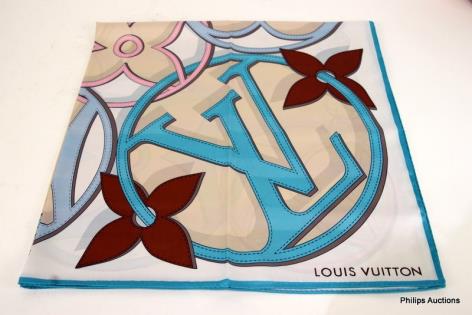 A LOUIS VUITTON SILK SCARF (BLUE)